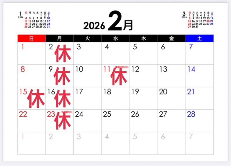酒楽場天軍2月営業日